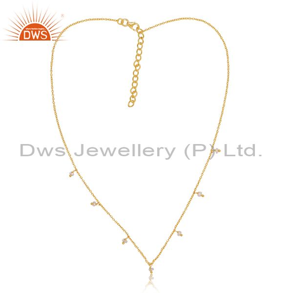 Natural Zircon Set Gold On Sterling Silver Designer Necklace