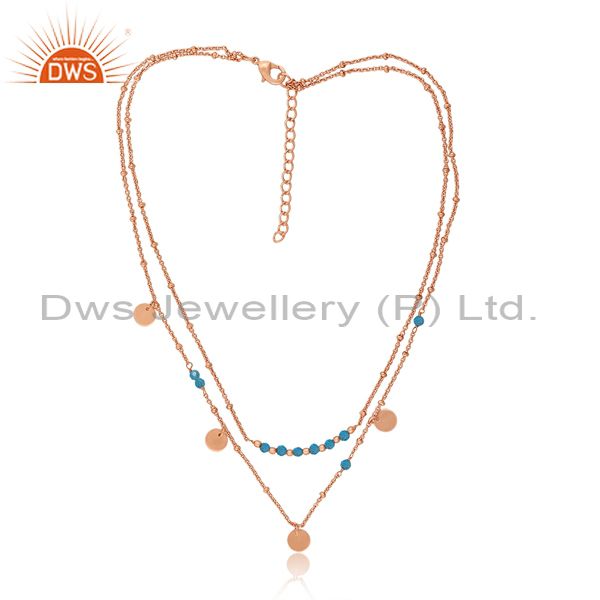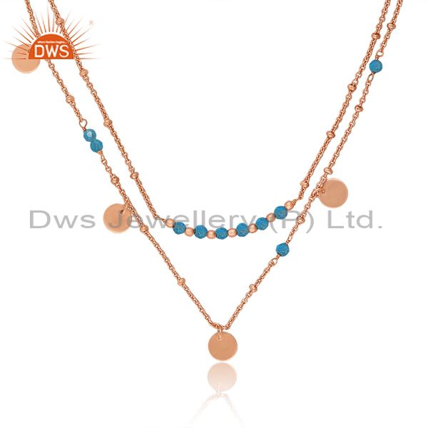 Neon Apatite Set Rose Gold On Brass Double Chain Necklace