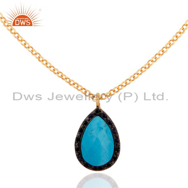 New Sterling Silver 18K Gold Blue Sapphire & Turquoise Pearshape Necklace