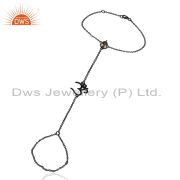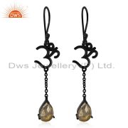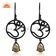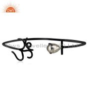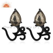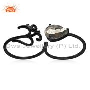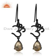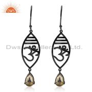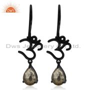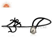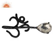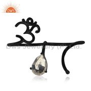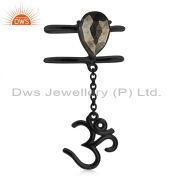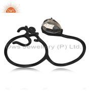 Om Charm Black Rhodium Plated Pyrite Gemstone 925 Silver Chain Pendant Wholesale