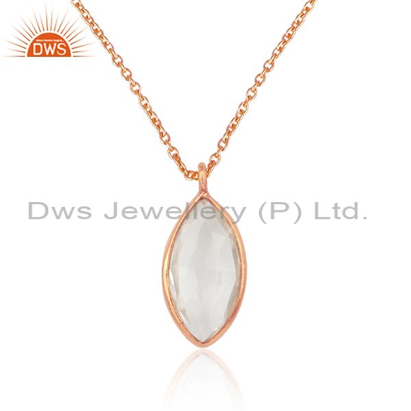 Oval Crystal Quartz Pendant With Rose Plated Silver Chain