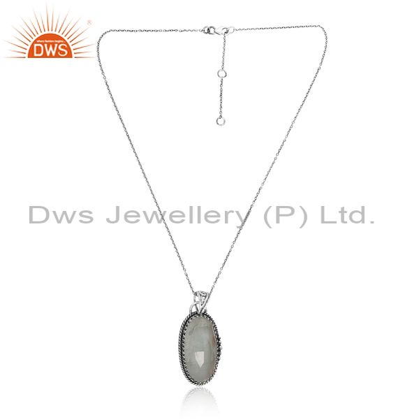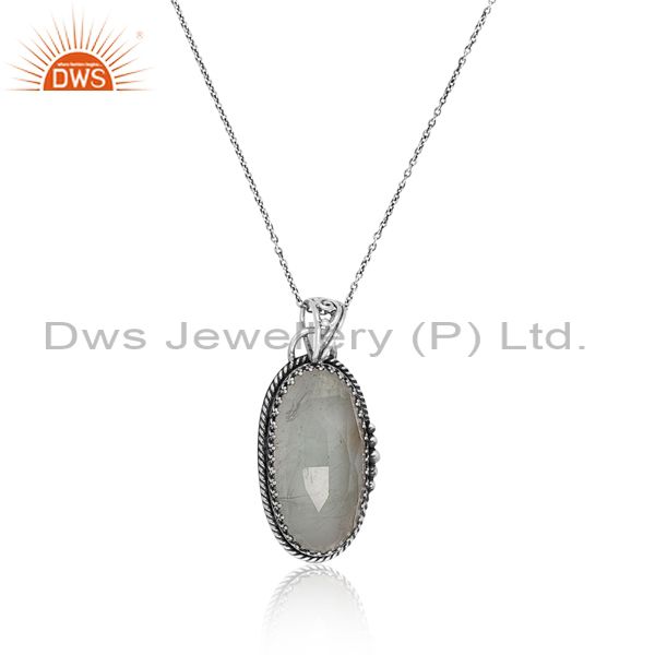 Oval Cut Fluorite Oxidized Sterling Silver Pendant And Chain