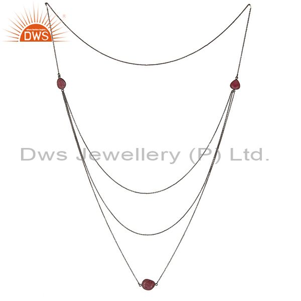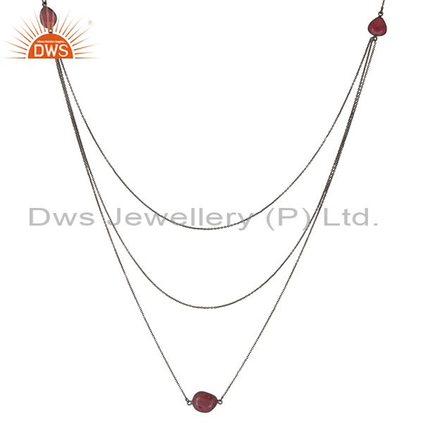 Oxidized 925 Sterling Silver Blue Sapphire 32 Inch Chain Necklace Jewelry