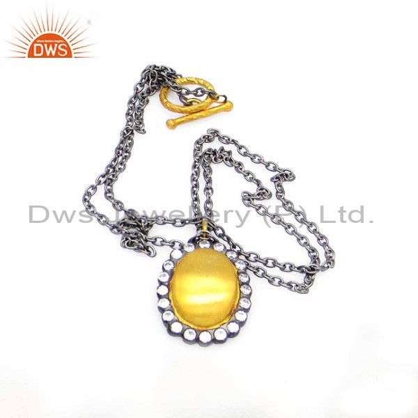Oxidized And 22K Yellow Gold Plated Sterling Silver Cz Pendant With Chain