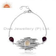 Oxidized Silver Amethyst Rainbow Moonstone Gemstone Chain Necklace