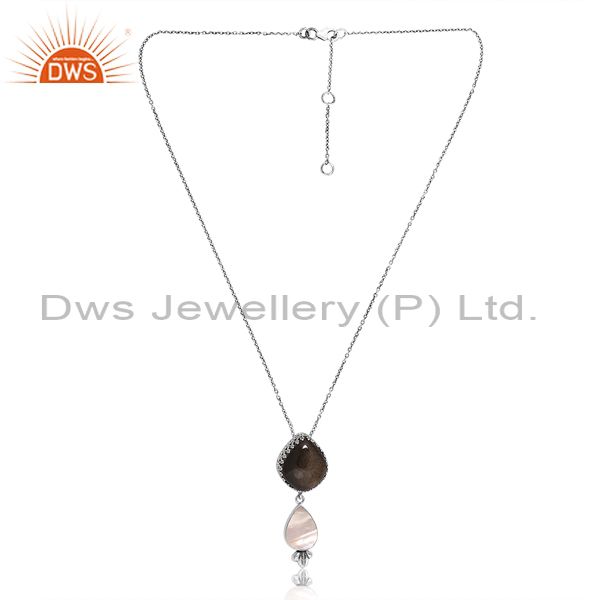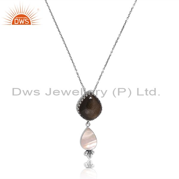 Oxidized Silver Pendant & Necklace With Pearl & Bold Sheen
