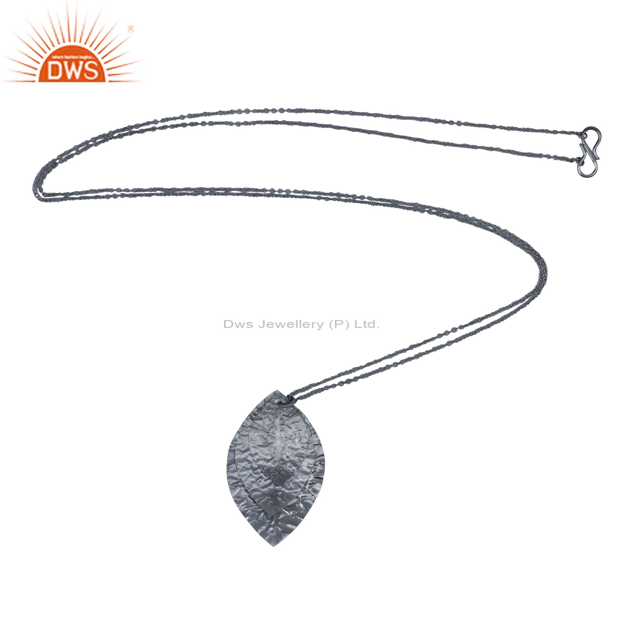 Oxidized Solid Sterling Silver Three Petal Pendant With Chain Necklace