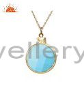 Oxidized Solid Sterling Silver Turquoise Gemstone Bezel Set Pendant With Chain