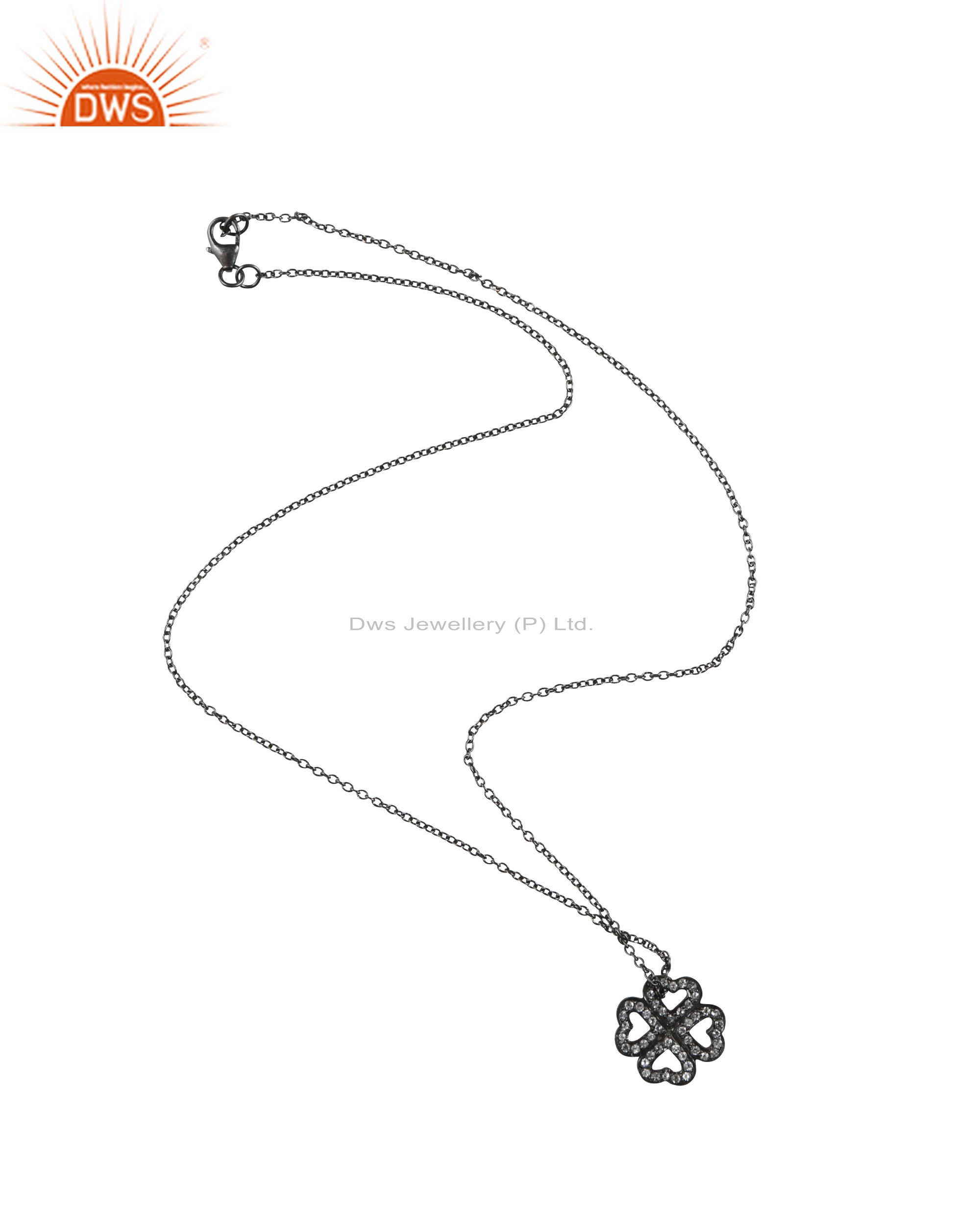 Oxidized Solid Sterling Silver White Topaz Heart Pendant With Chain Necklace
