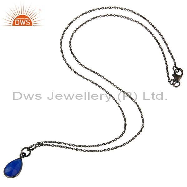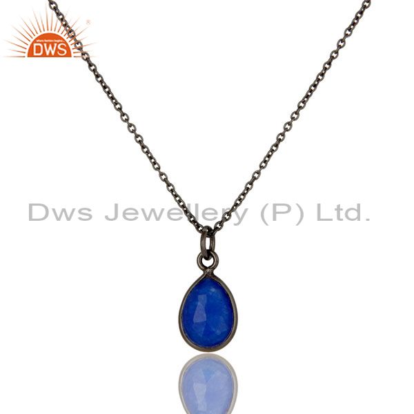 Oxidized Sterling Silver Faceted Blue Aventurine Bezel Set Drop Pendant Necklace