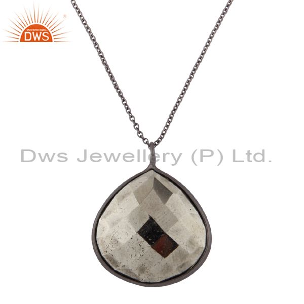 Oxidized Sterling Silver Faceted Pyrite Bezel Set Drop Pendant With Chain