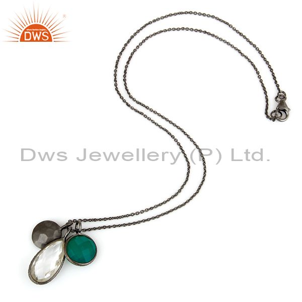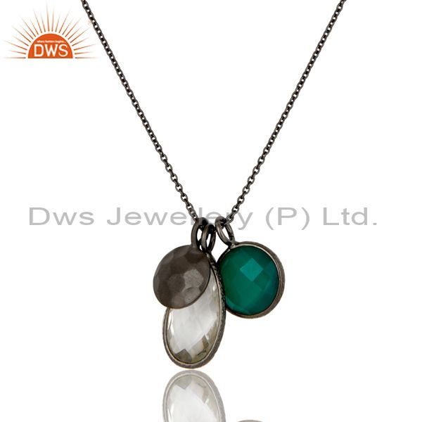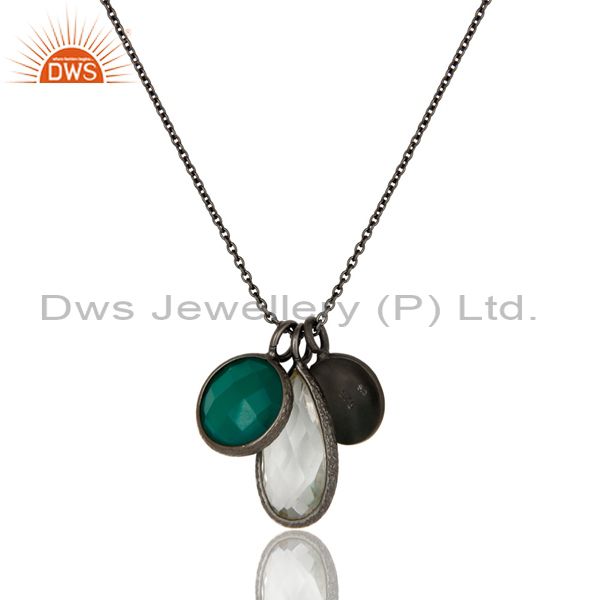 Oxidized Sterling Silver Green Onyx And Crystal Quartz Charms Chain Necklace