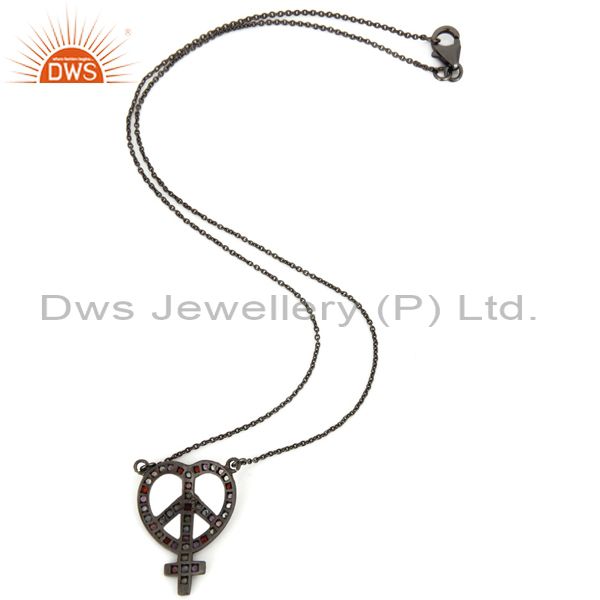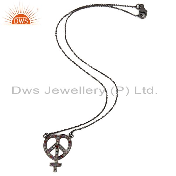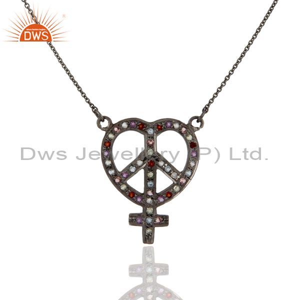 Oxidized Sterling Silver Multi Gemstone Heart, Ankh & Peace Sign Pendant Chain