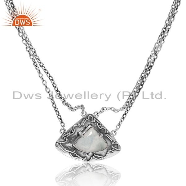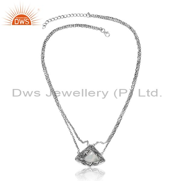 Oxidized Sterling Silver Pendant & Necklace With Larimar Gem