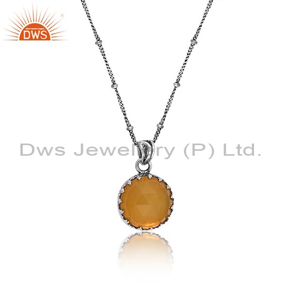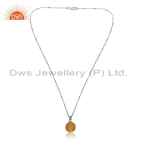 Oxidized Sterling Silver Pendant & Necklace With Yellow Opal