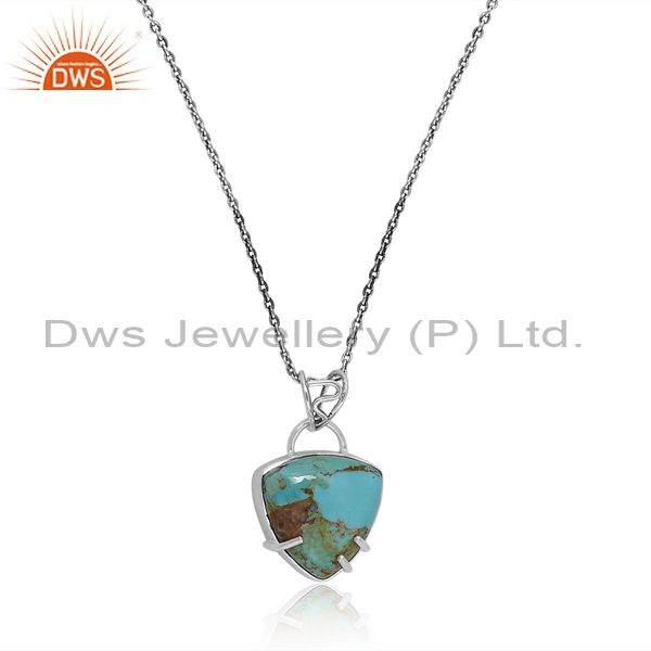 Oxidized Sterling Silver Pendant And Necklace With Turquoise