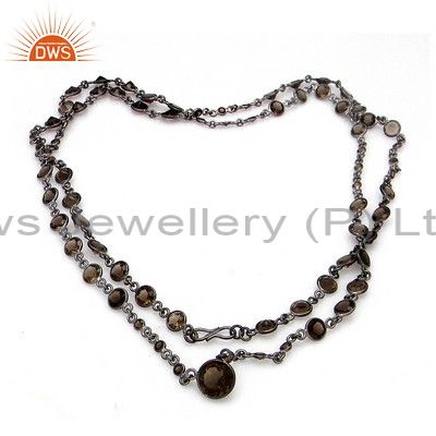 Oxidized Sterling Silver Smoky Quartz Gemstone Bezel Set Chain Necklace