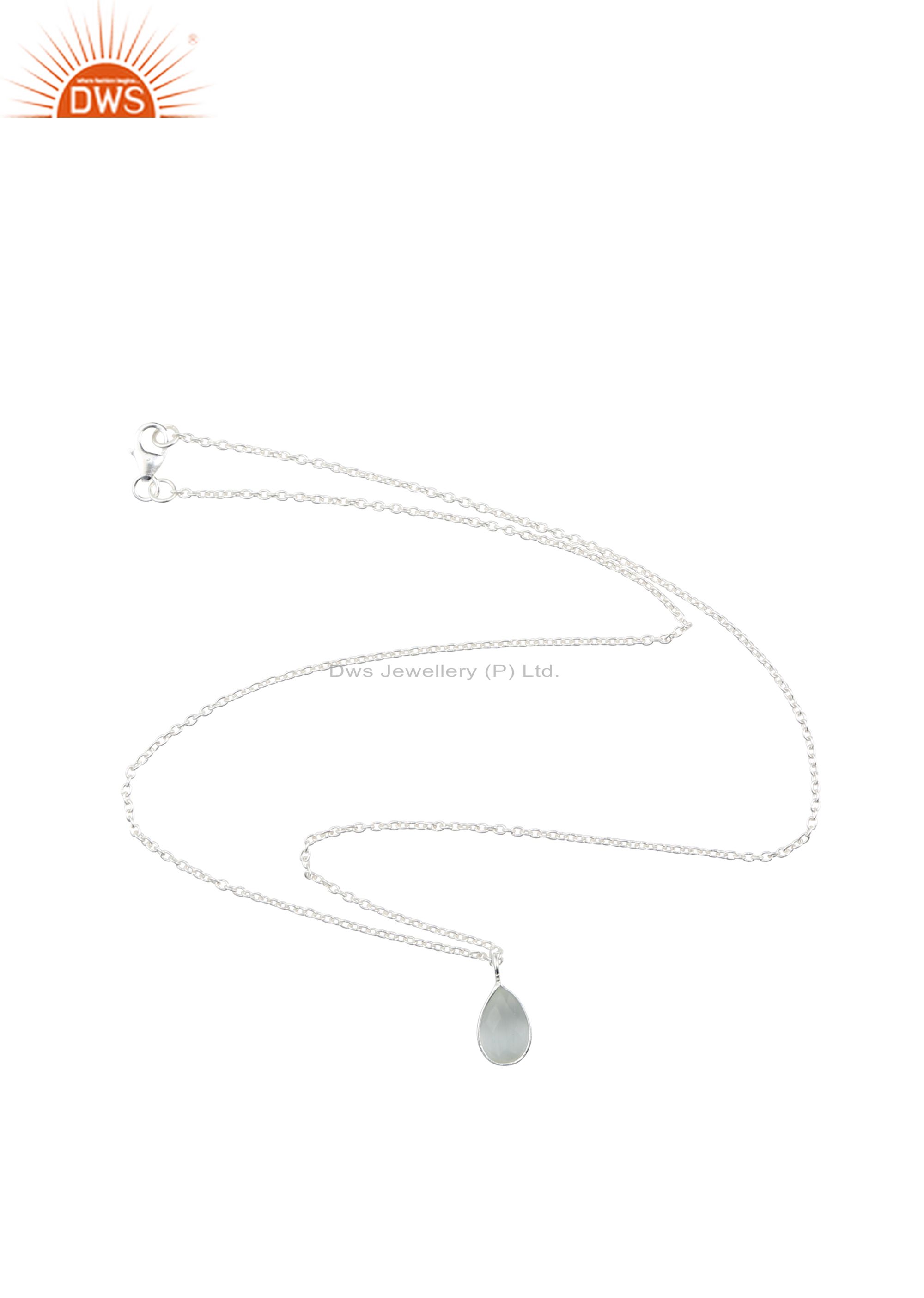 Oxidized Sterling Silver White Moonstone Bezel Set Drop Pendant With Chain