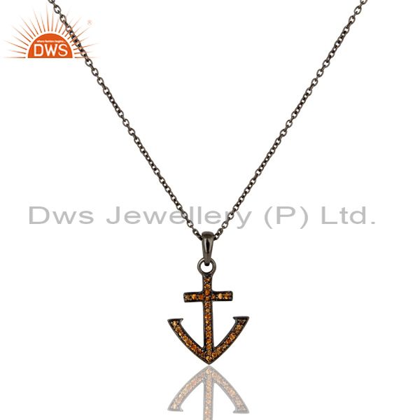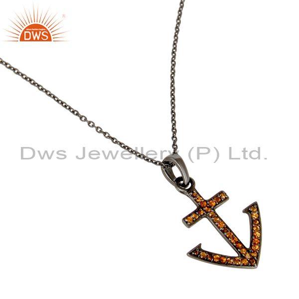 Oxidized With Spessartite Christmas Design Sterling Silver Pendant Necklace