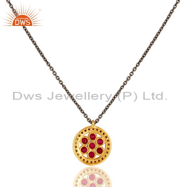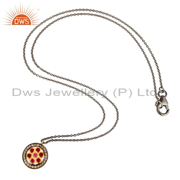 Pave Diamond and Natural Ruby Sterling Silver Black Oxidized Round Pendant