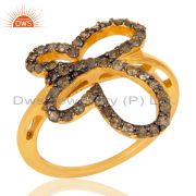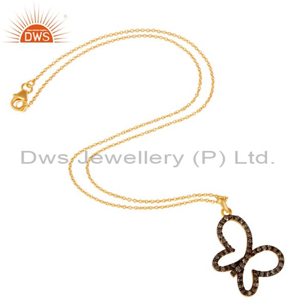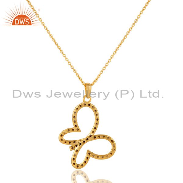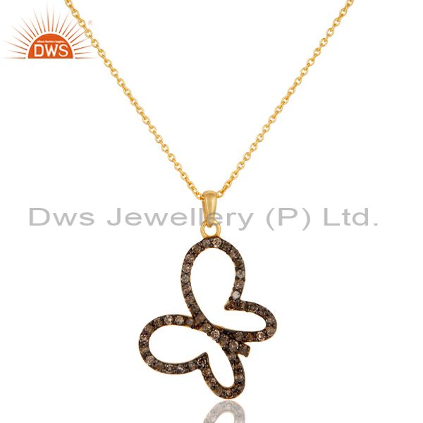 Pave Diamond Set 18K Gold Plated Sterling Silver Butterfly Pendant Necklace