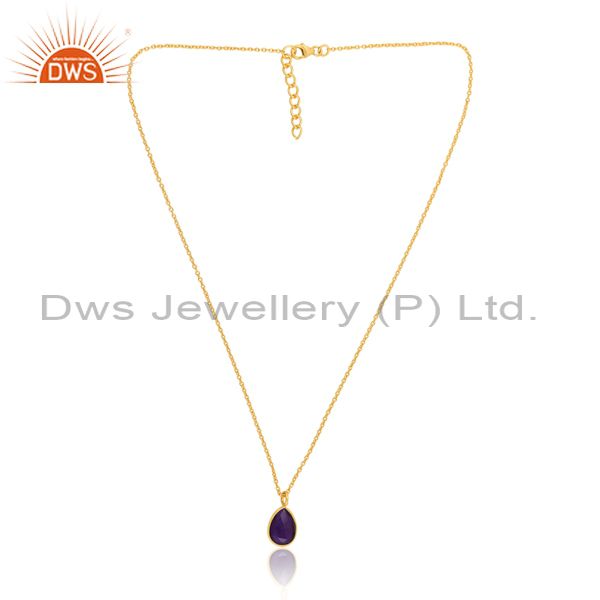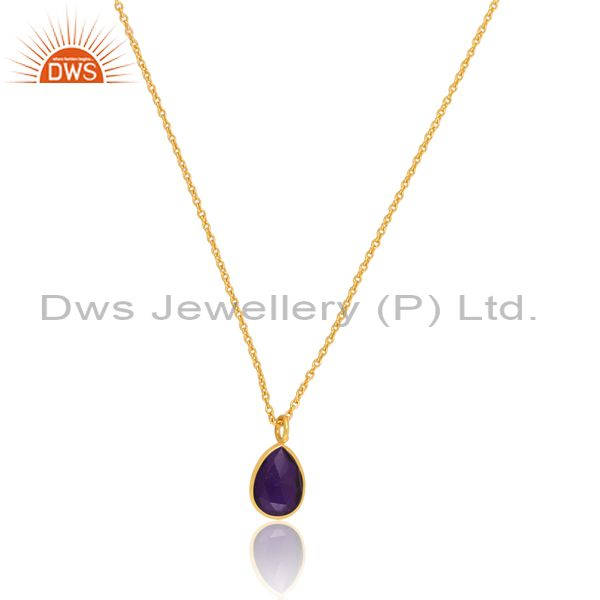 Pear Cut Doublet Amethyst Quartz Set 18K Brass Gold Necklace