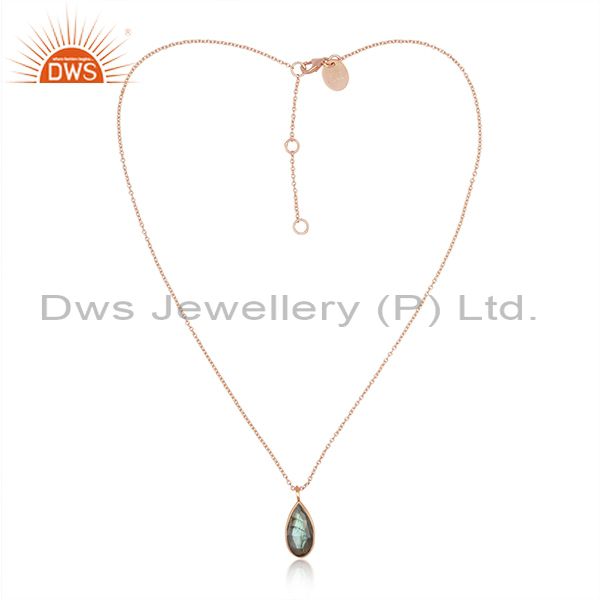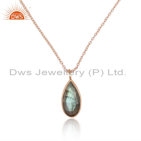 Pear Cut Labradorite Pendant And Rose Gold On Silver Chain