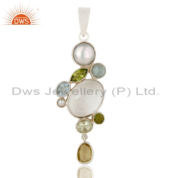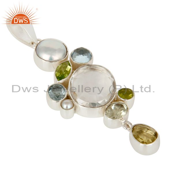 Pearl, Amethyst, Blue Topaz And Multi Gemstone Sterling Silver Pendant