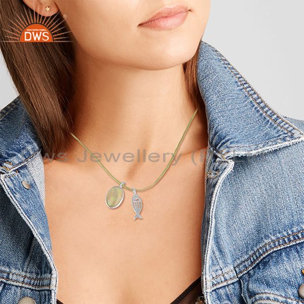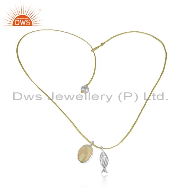 Pearl Ethiopian Gemstone Fish Charm Sterling Silver Dori Necklace