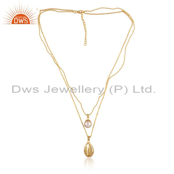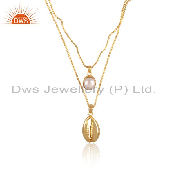 Pearl Set Gold On 925 Silver Classic Double Chain Necklace