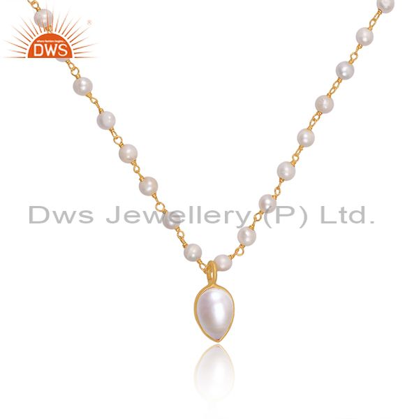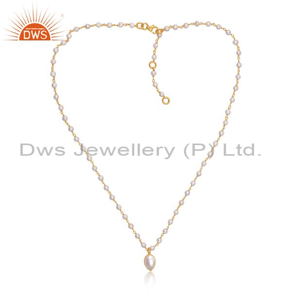 Pearl Set Gold On 925 Sterling Silver Pendant And Necklace