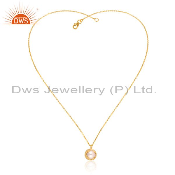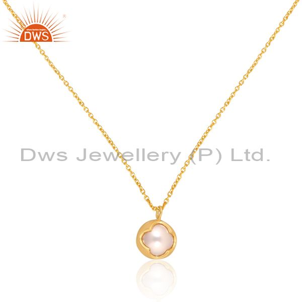 Pearl Set Gold On Sterling Silver Round Pendant And Chain