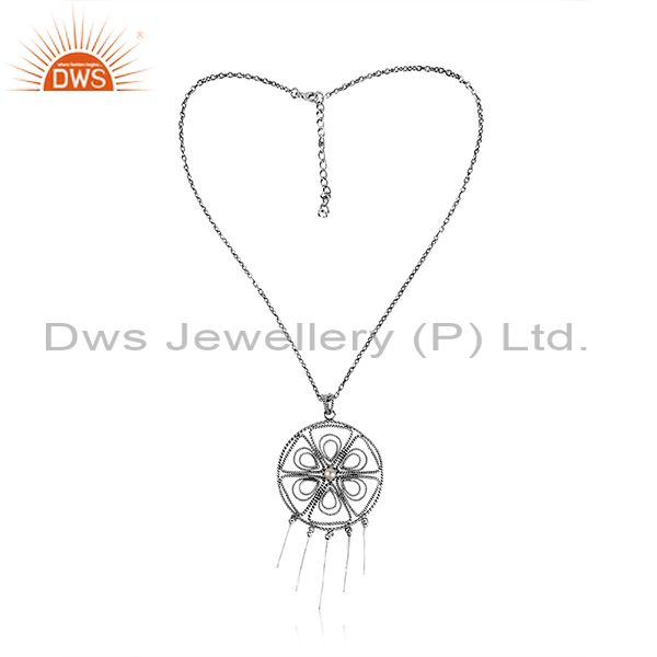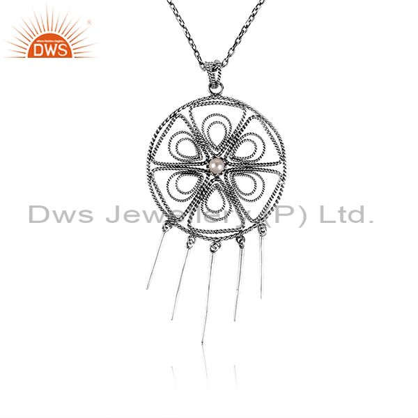 Pearl Set Oxidized Sterling Silver Boho Pendant And Chain