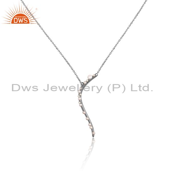 Pearl Set White Rhodium On Silver Classic Pendant And Chain