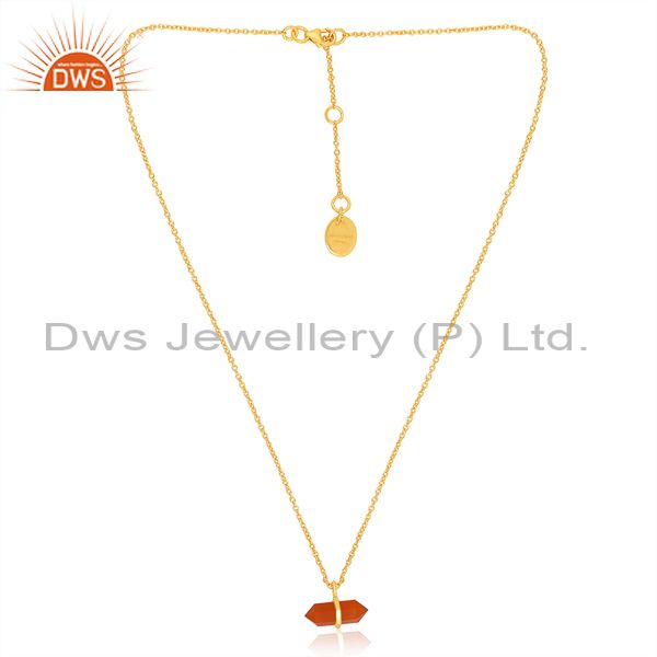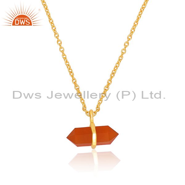 Pencil Cut Carnelian Set 18K Brass Gold Pendant And Necklace