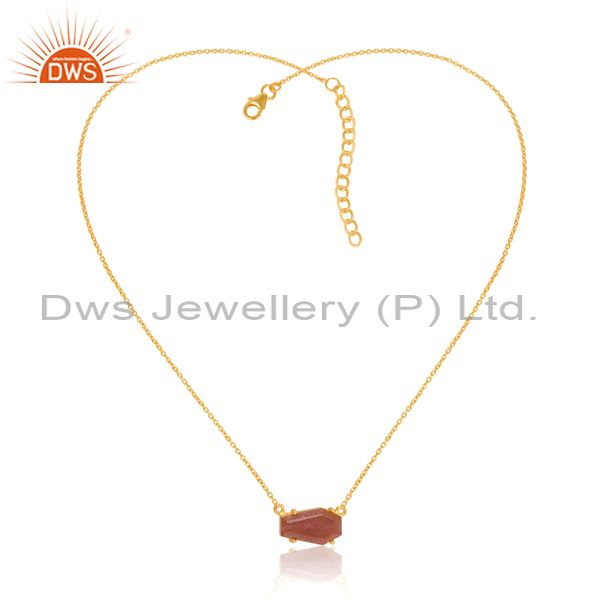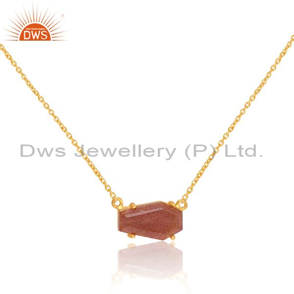 Pendant & Necklace 18K Gold Silver With Strawberry Quartz