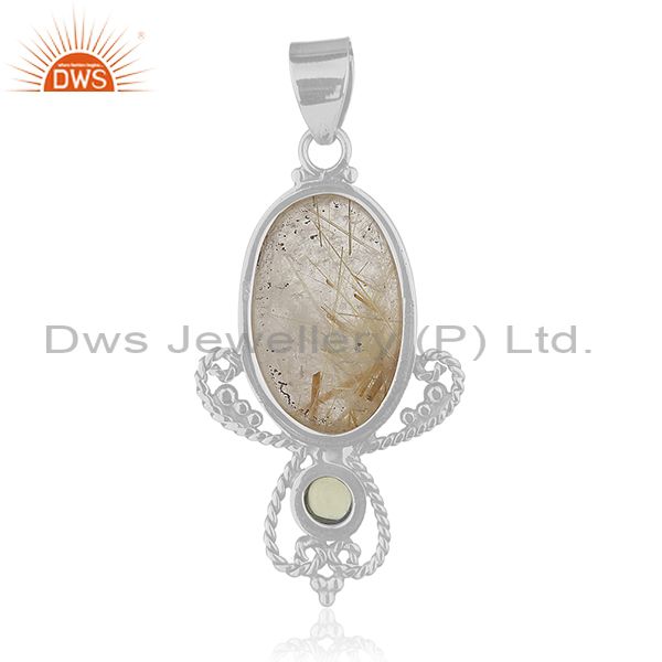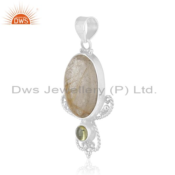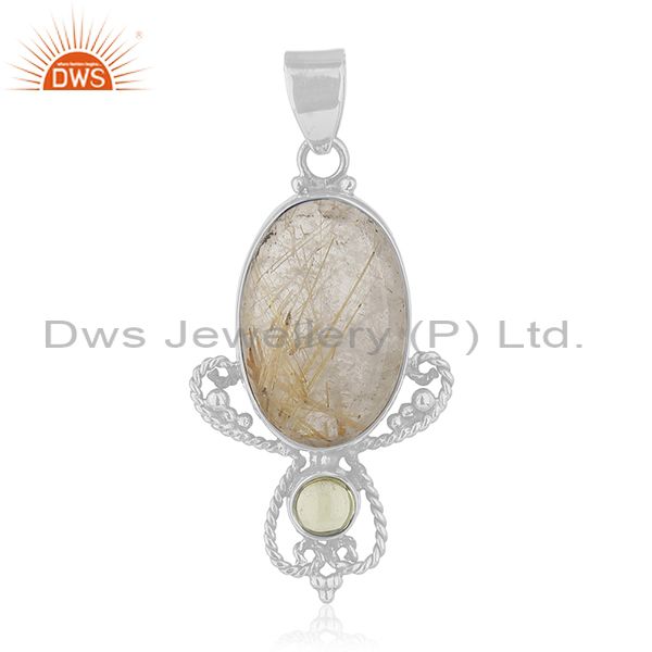 Peridot and Rutile Gemstone Designer 925 Sterling Silver Pendant Manufacturer