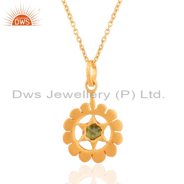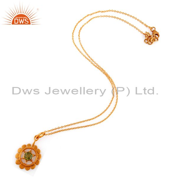 Peridot Gemstone 18K Yellow Gold Over Sterling Silver Pendant 16" In Chain Neckl