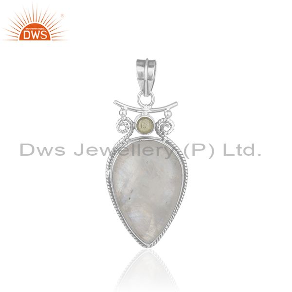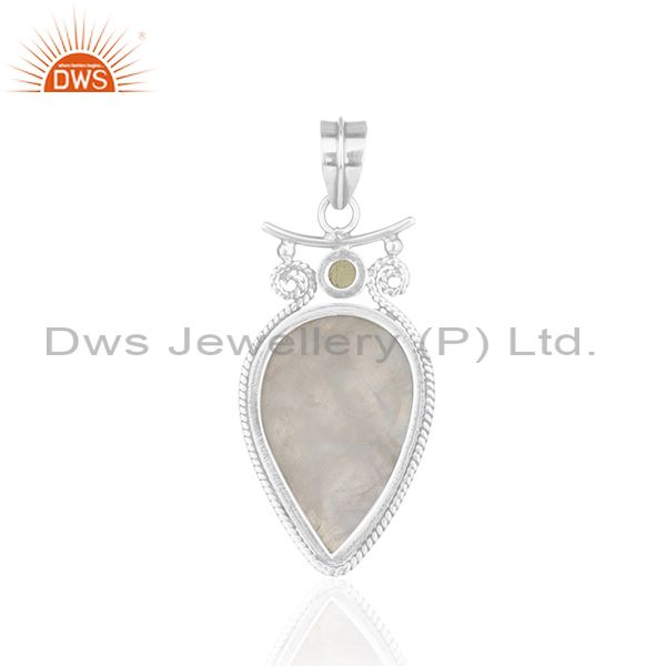 Peridot Gemstone Rainbow Moonstone Oxidized 925 Silver Pendant Wholesale