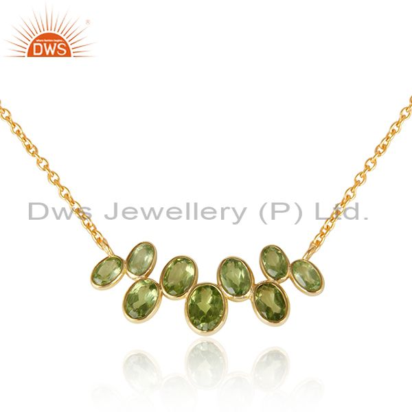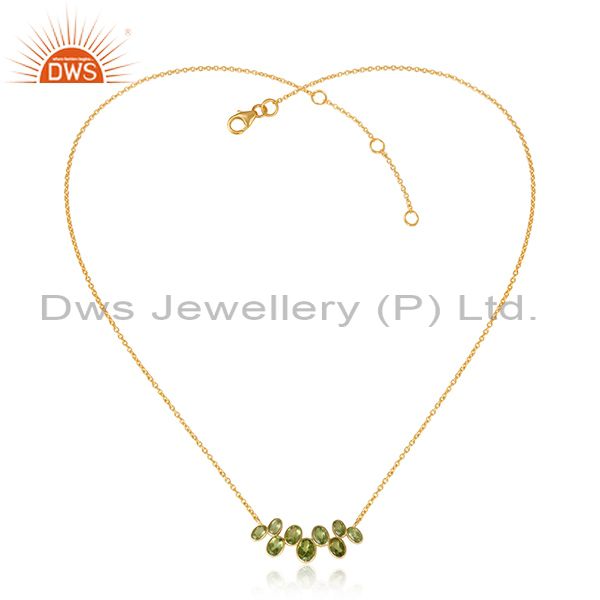 Peridot Gemstone Yellow Gold Plated 925 Silver Designer Necklace