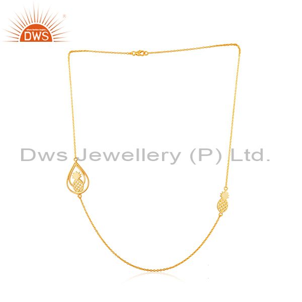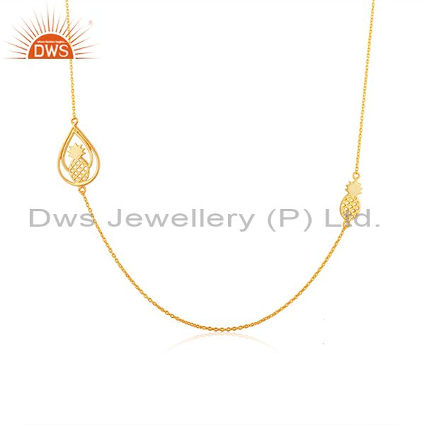 PineApple Design 925 Sterling Silver Yellow Gold Plated Chain Necklace Wholesale