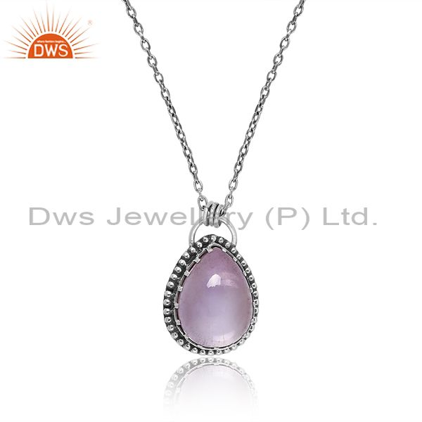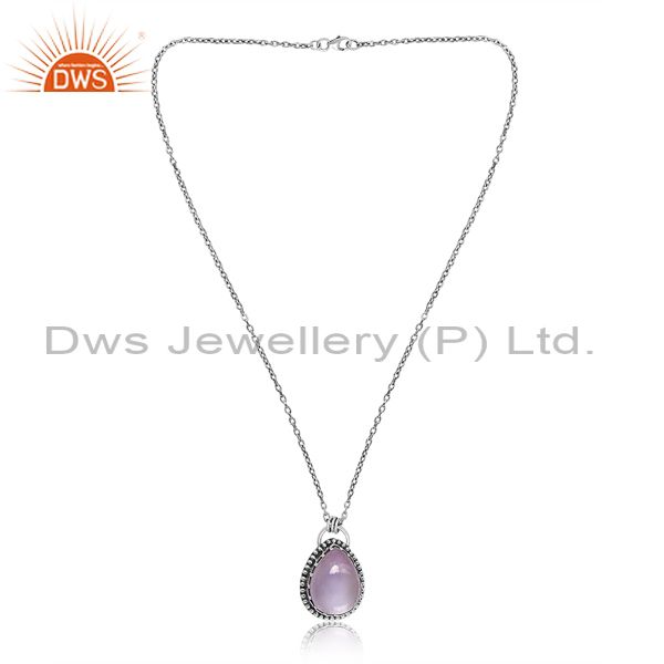 Pink Amethyst On Oxidized Silver Necklace & Pendant