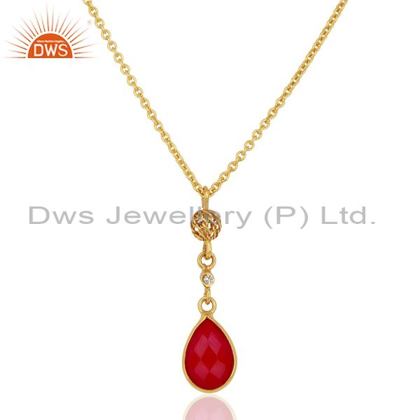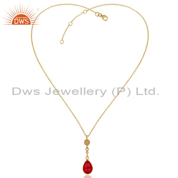 Pink Chalcedony Delicate Wholesale 14K Gold Plated Silver Jewelry Pendent
