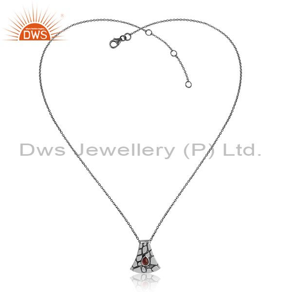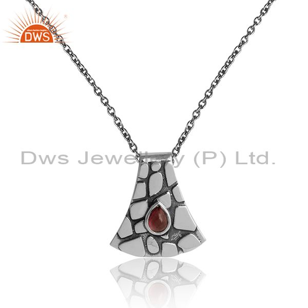 Pink Toulrmaline Bold Textured Necklace In Oxidized Silver 925