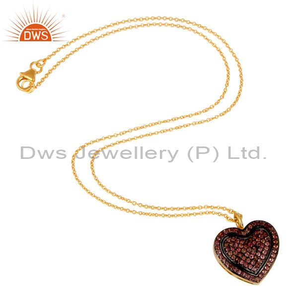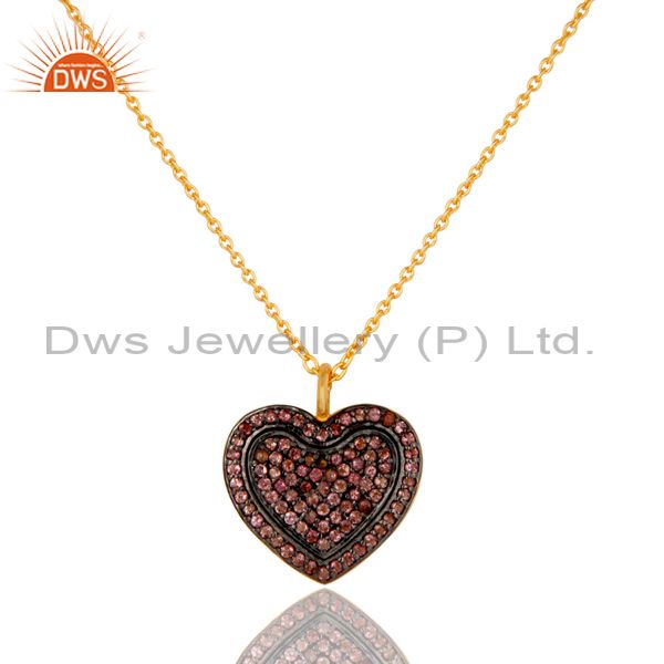 Pink Tourmaline Heart Shape Pendant 18K Gold Plated Sterling Silver Necklace