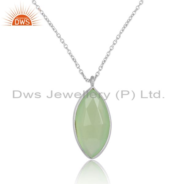 Prehnite Chalcedony Gemstone Fine Sterling Silver Chain Pendant