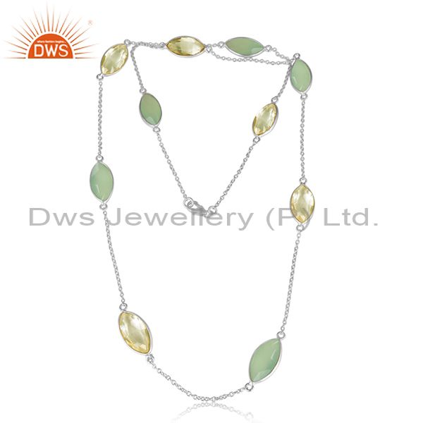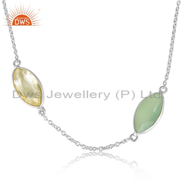 Prehnite Chalcedony Lemon Topaz Gemstone Fine Silver Necklace