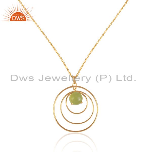 Prehnite Chalcedony Round Pendant And Gold On Silver Chain