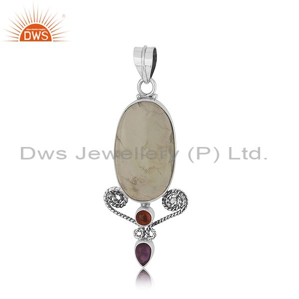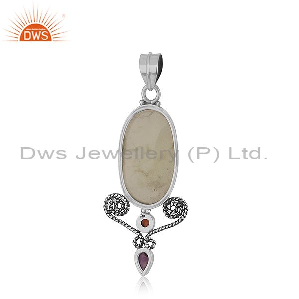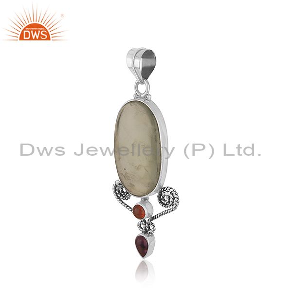 Prehnite Garnet Gemstone Sterling Silver Oxidized Pendant