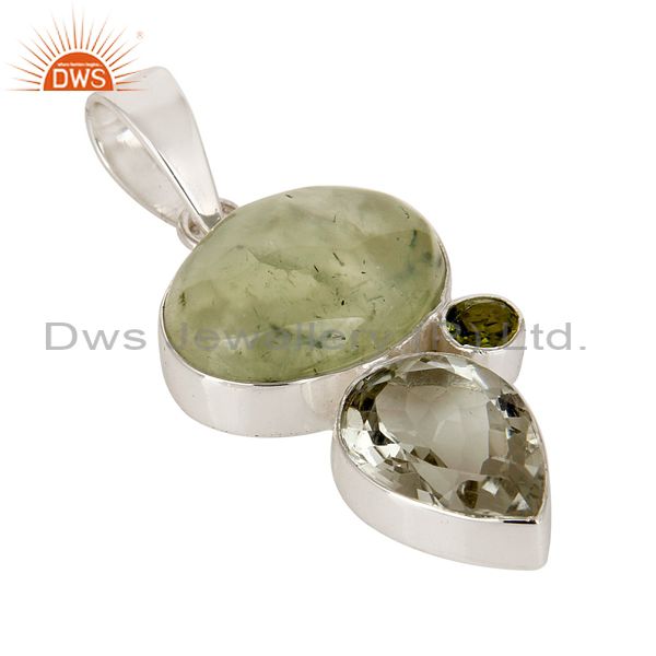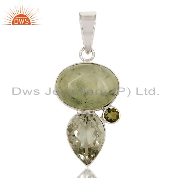Prehnite, Peridot & Green Amethyst Sterling Silver Artisan Pendant